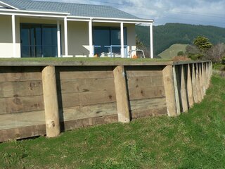 RETAINING WALLSWe are able to provide systems of retaining walls on sloped surfaces to either stabilize the ground and/or as a feature to coincide with other landscaping effects.All construction is undertaken with heavy duty, ground treated materials.Please ensure that you are familiar with the Terms & Conditions before ordering any of our services.See some example photos below.